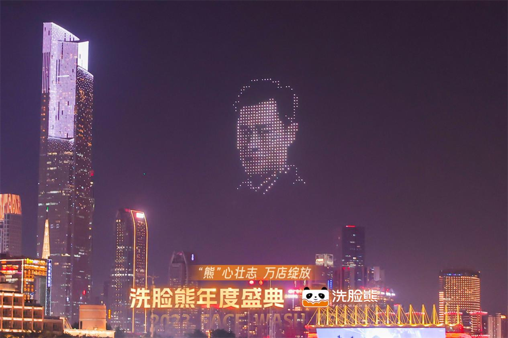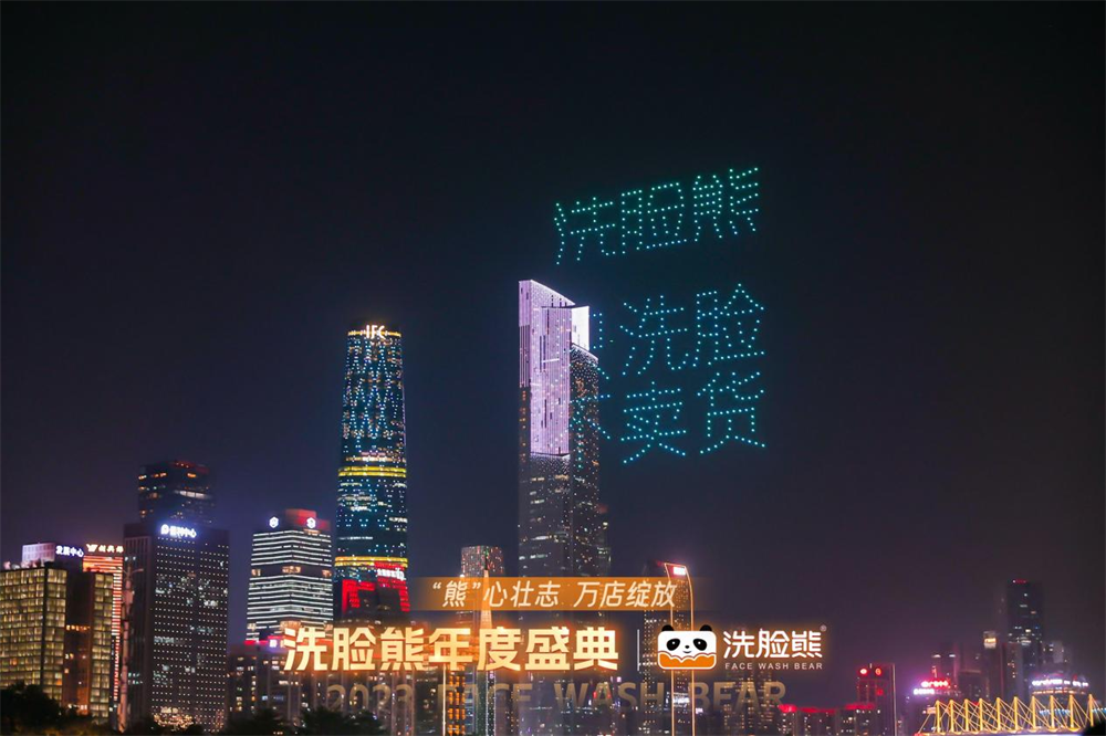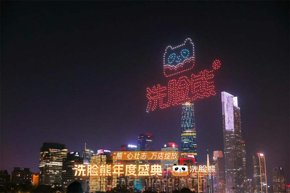 當(dāng)天的無人機(jī)表演,是洗臉熊慶祝2023年度盛典的活動之一。